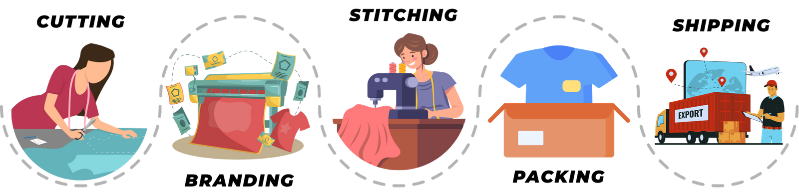 Our integrated tracking system gives you real‑time updates at every stage — from sampling and cutting to stitching, quality checks, and final packing. You’ll always know where your order stands.